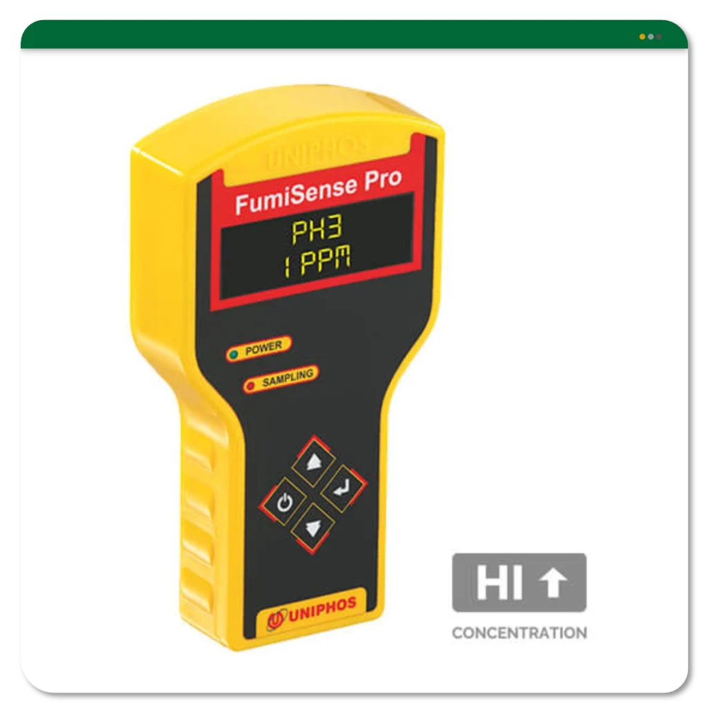 Uniphos 351M MBr-Lo adalah monitor gas genggam yang dirancang untuk mendeteksi konsentrasi rendah Metil Bromida (MBr) di sekitar area fumigasi. Perangkat ini ideal untuk mendeteksi kebocoran dan memastikan keselamatan di sekitar area fumigasi.